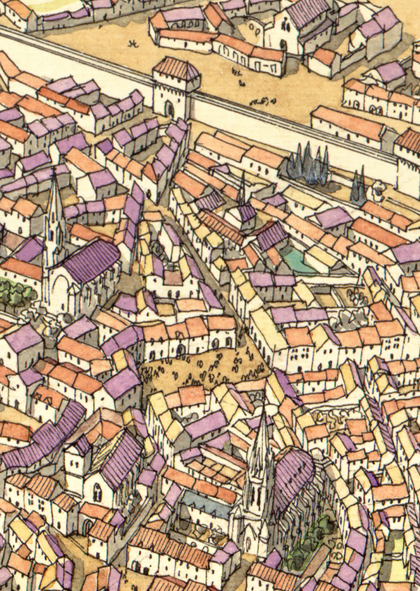 La boutique vous propose cette représentation de “Montpellier à l’époque médiévale” par Jean-Claude Golvin.