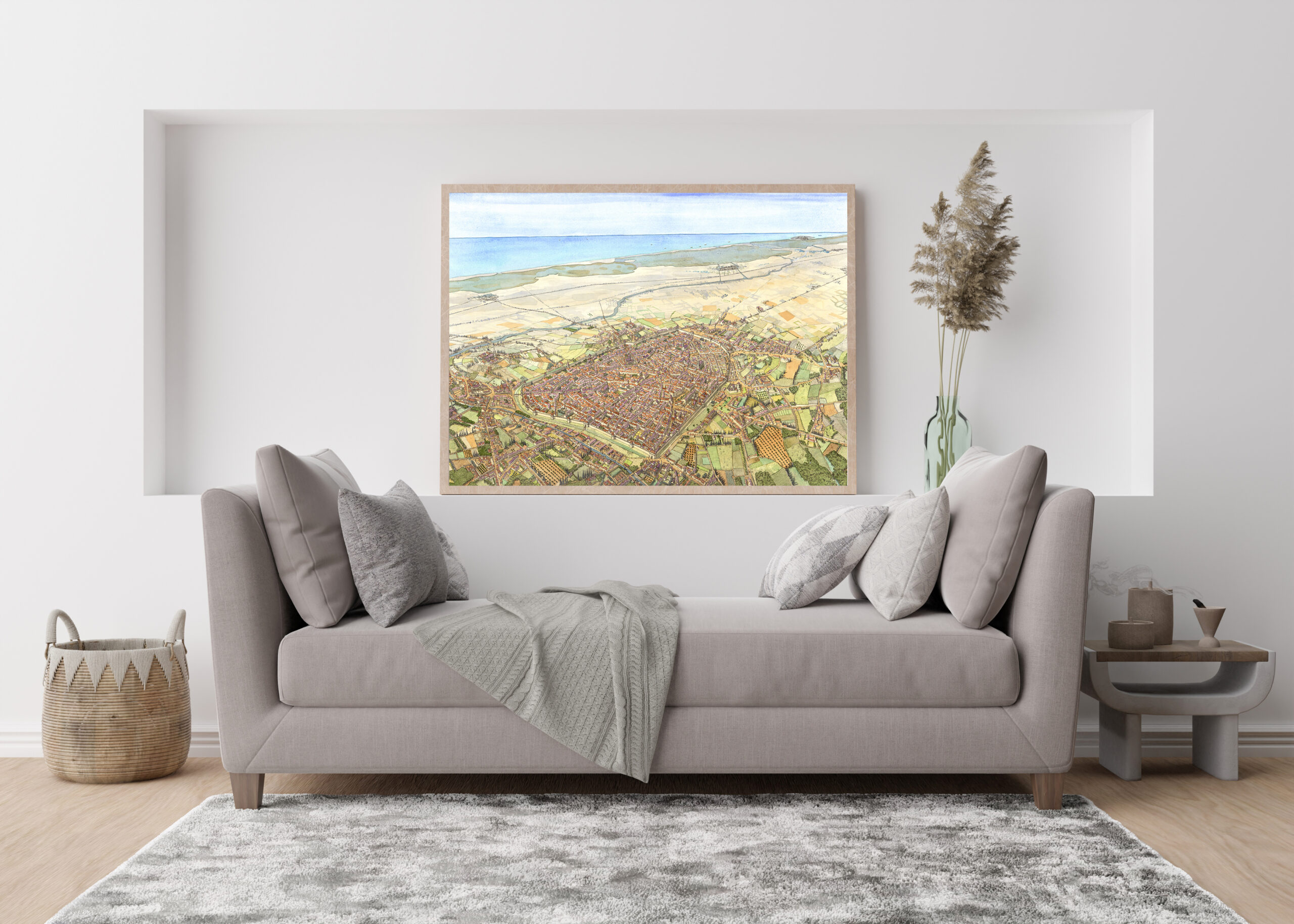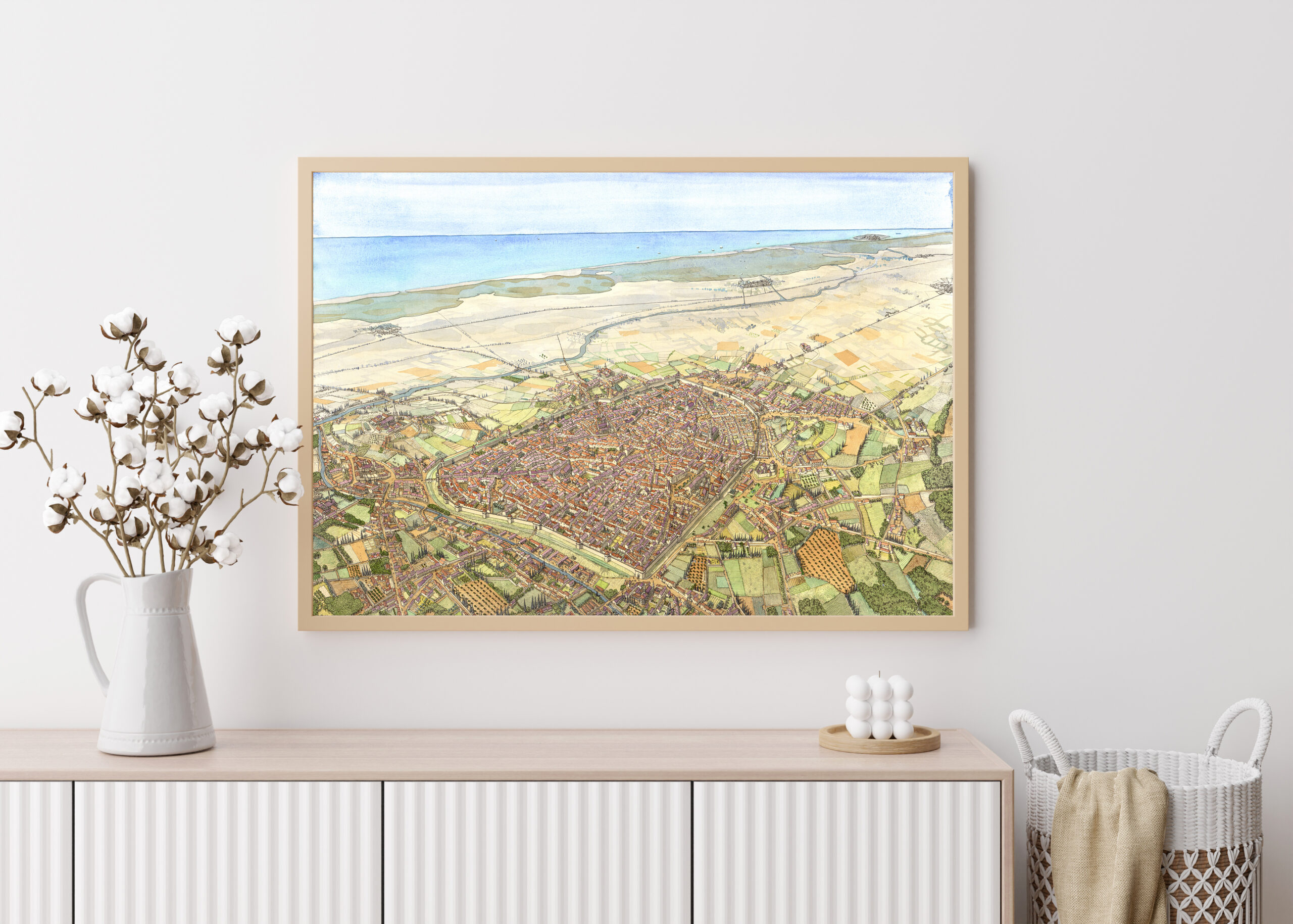 Imprimé sur commande, le dessin est au format paysage (largeur 96 cm x hauteur 68 cm).