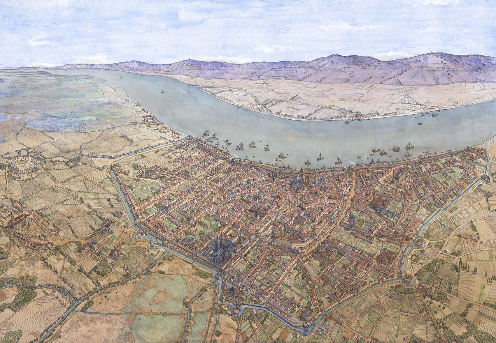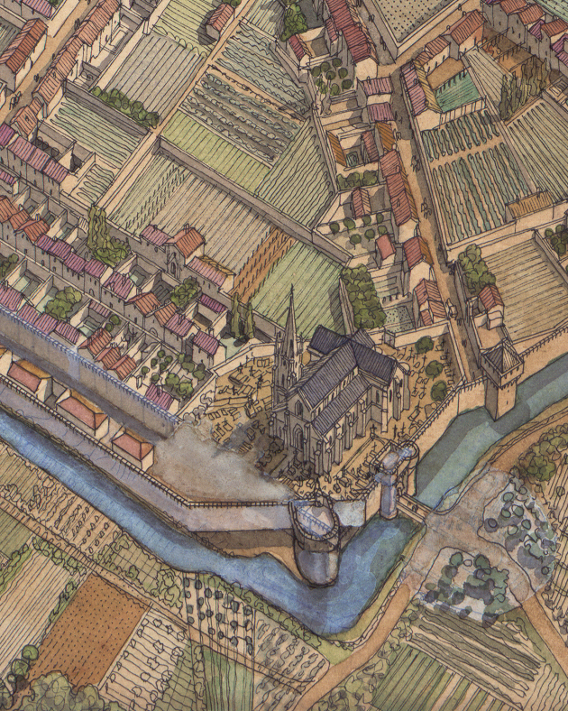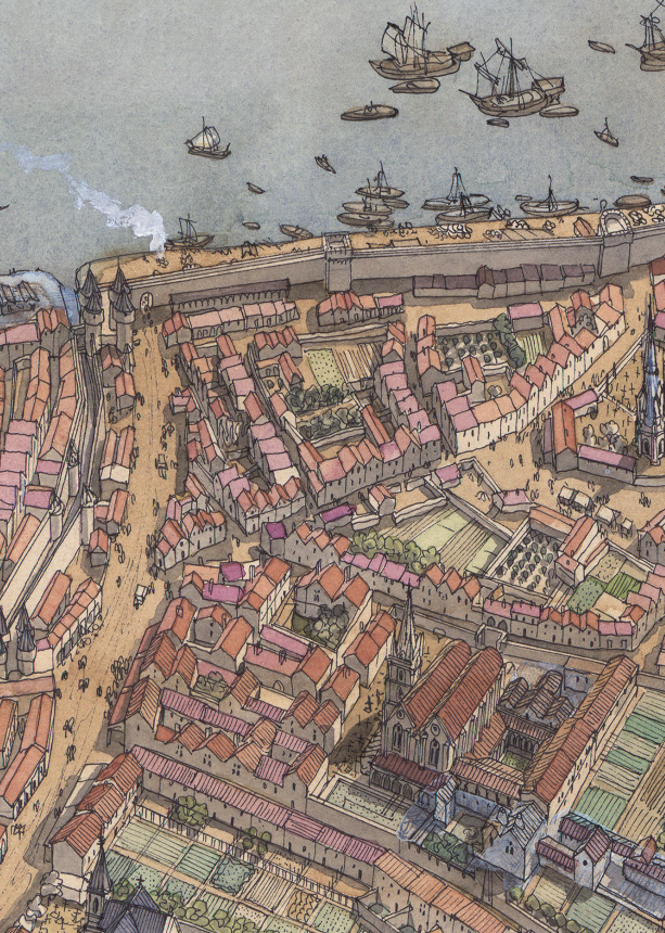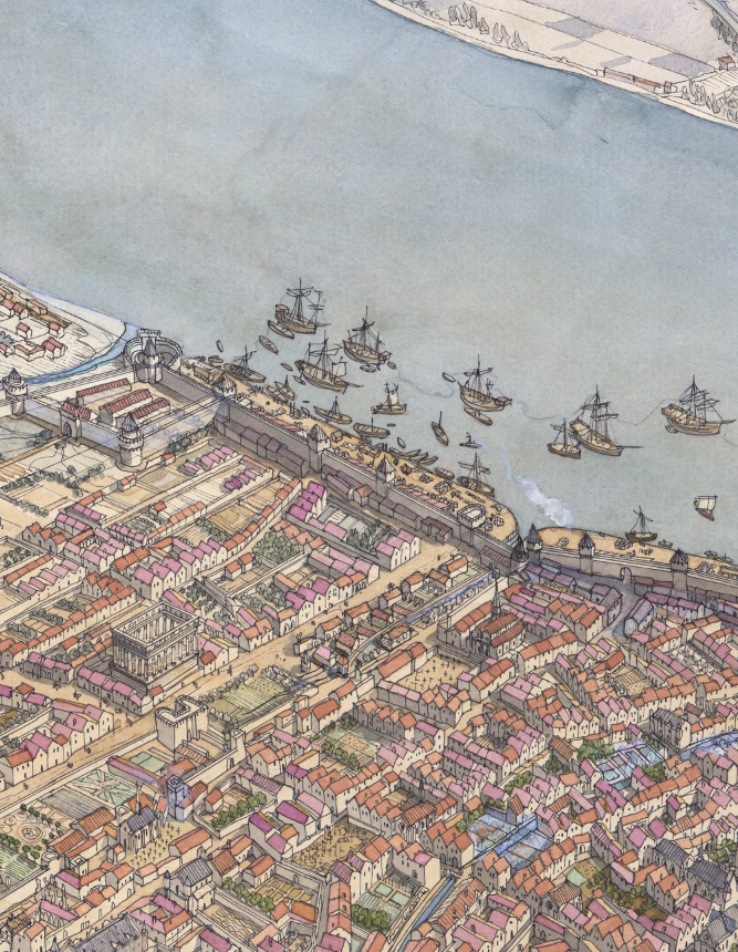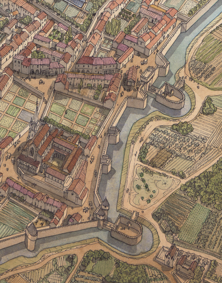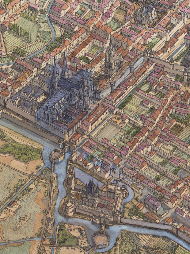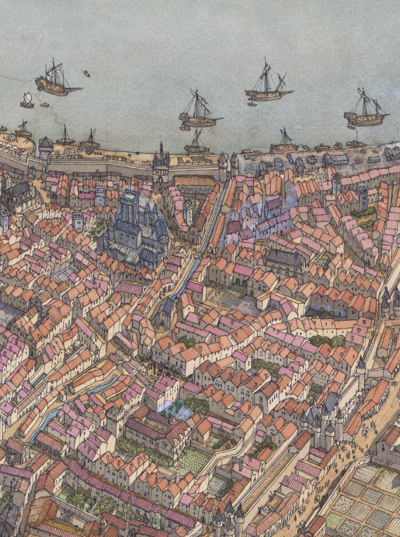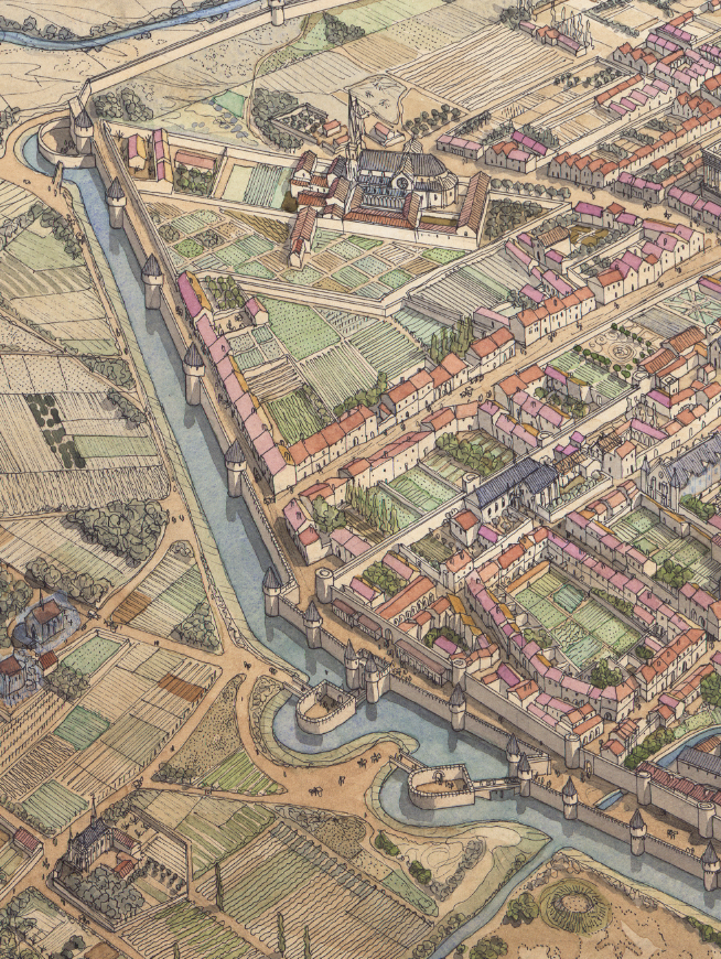 La boutique vous propose cette représentation en grand format de “Bordeaux à l’époque médiévale” par Jean-Claude Golvin.