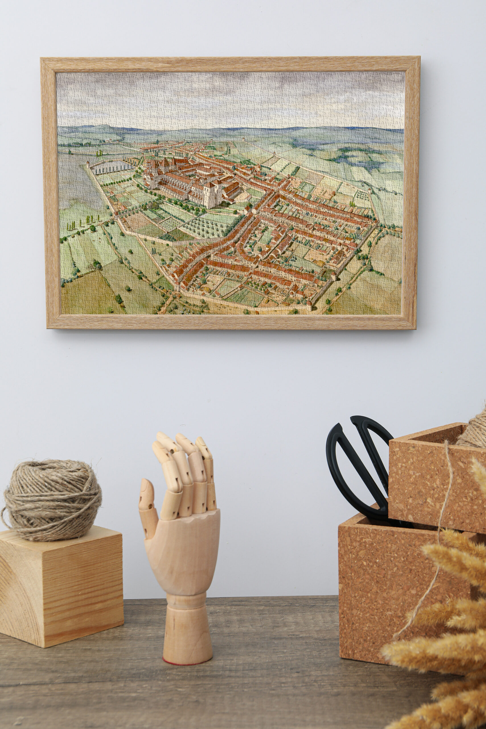 Il propose de reconstituer une vue aérienne de l’abbaye de Cluny au Moyen Âge.