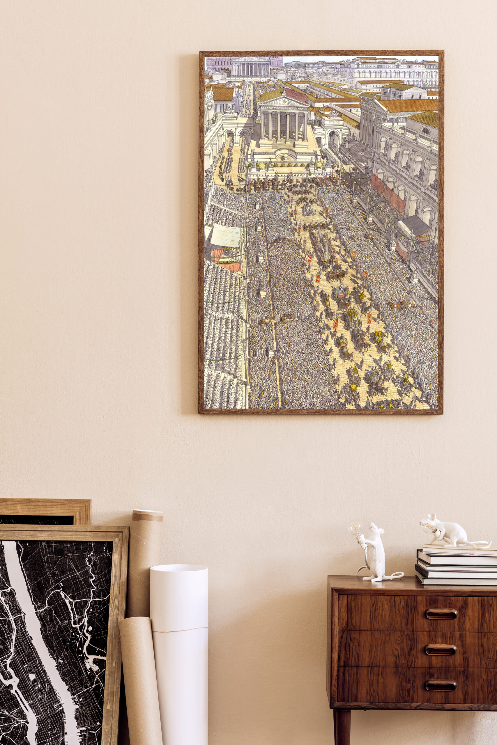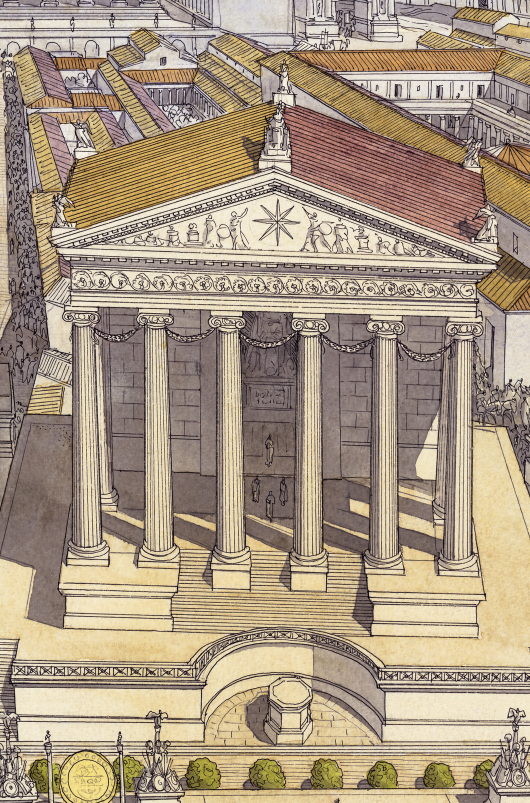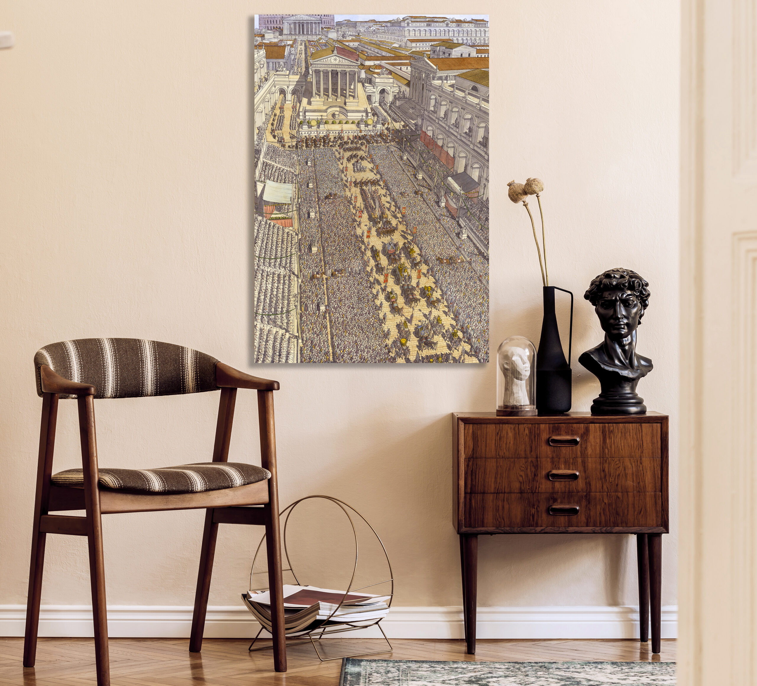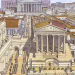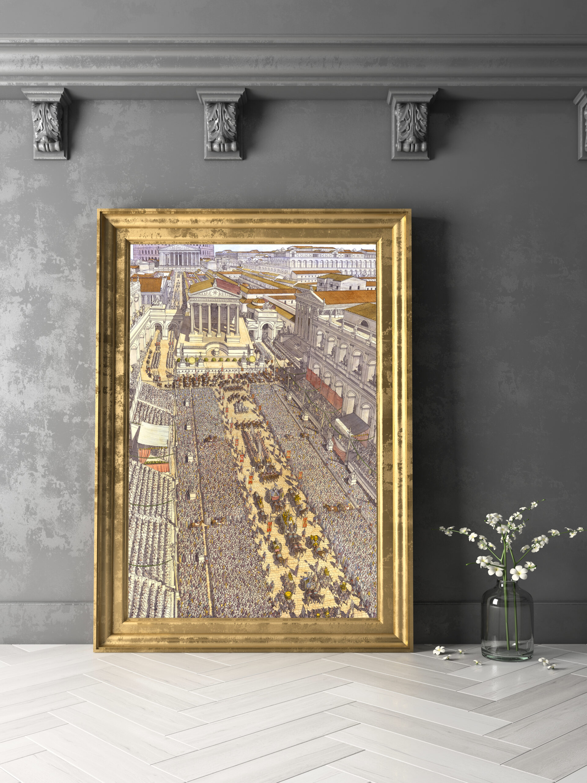 La boutique vous propose cette représentation en grand format de “Roma (Rome), la procession du Triomphe traversant le Forum Romain” par Jean-Claude Golvin.