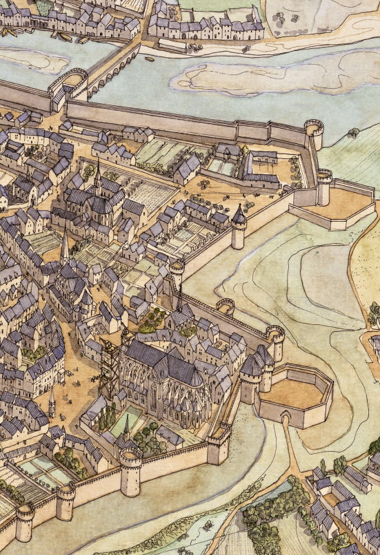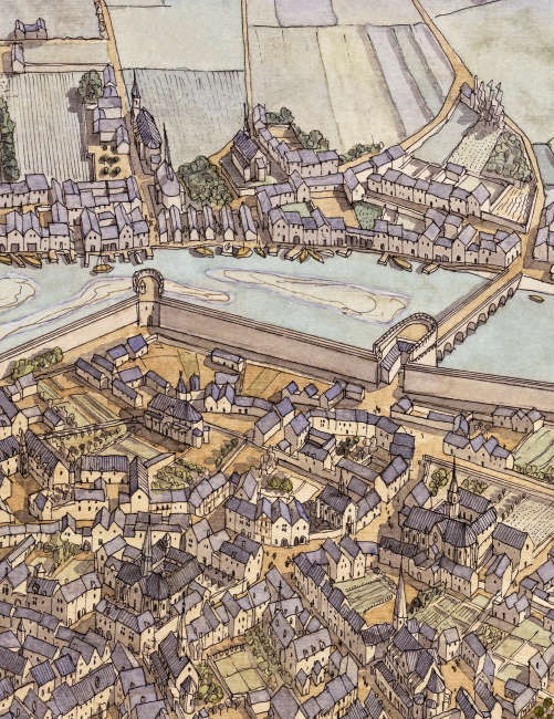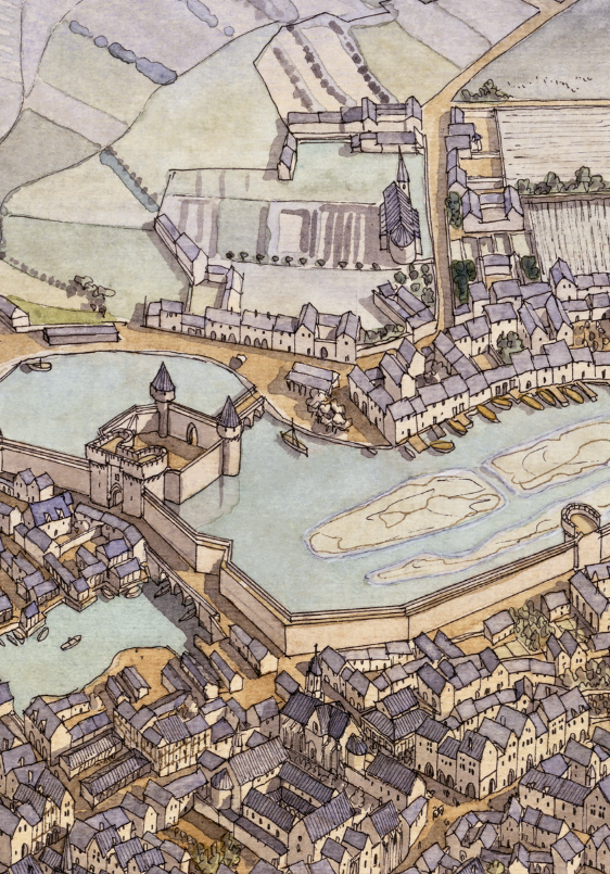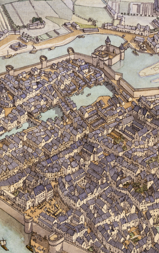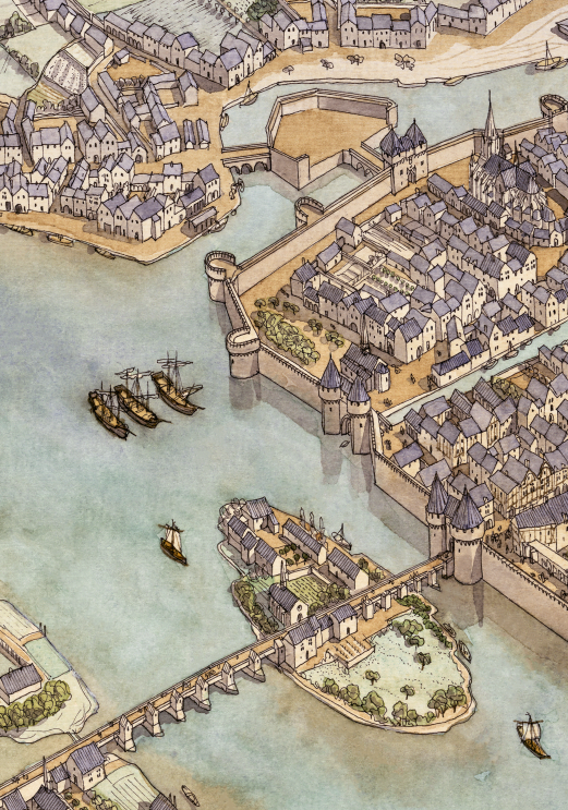 La boutique vous propose cette représentation de “Nantes à l’époque médiévale” par Jean-Claude Golvin.