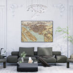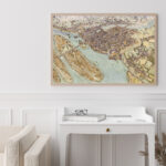 Imprimé sur commande, le dessin est au format paysage (largeur 98 cm x hauteur 68 cm).