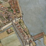 Elle est traversée par deux ponts en pierre et se développe à l’intérieur de remparts fortifiés, ponctués de tours et de portes, et bordés de douves.