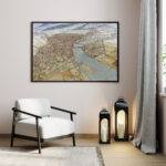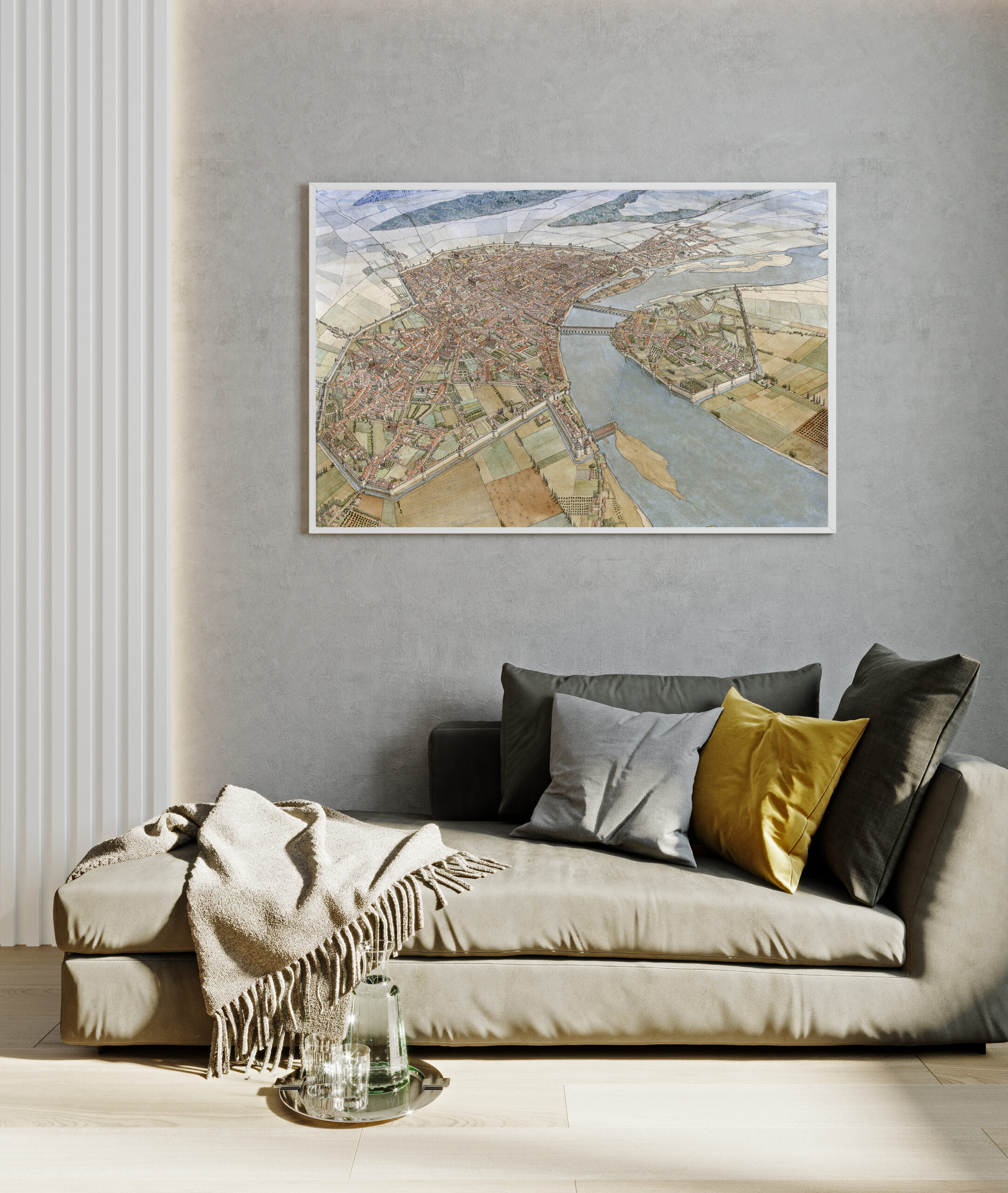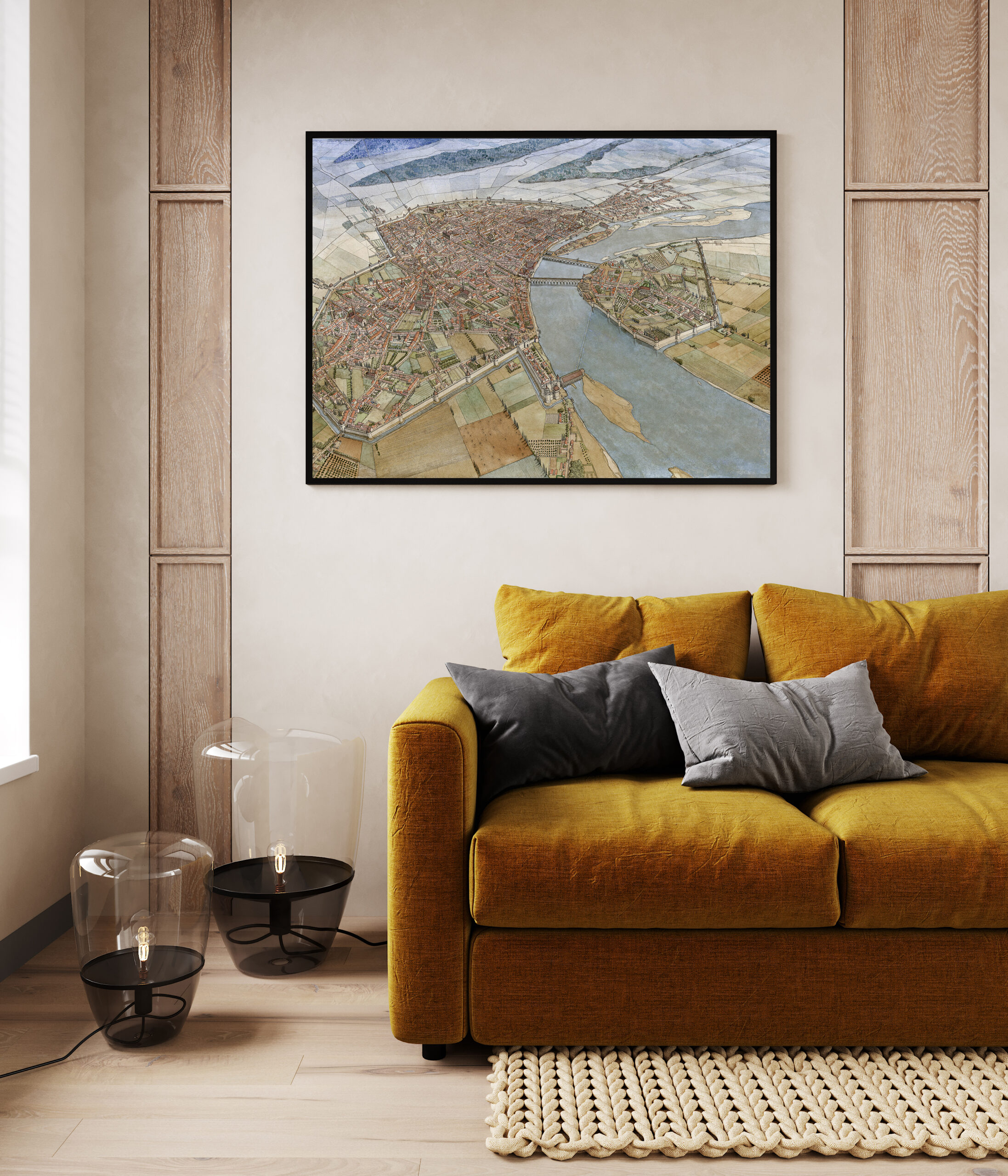 Imprimé sur commande, le dessin est au format paysage (largeur 97 cm x hauteur 68 cm).