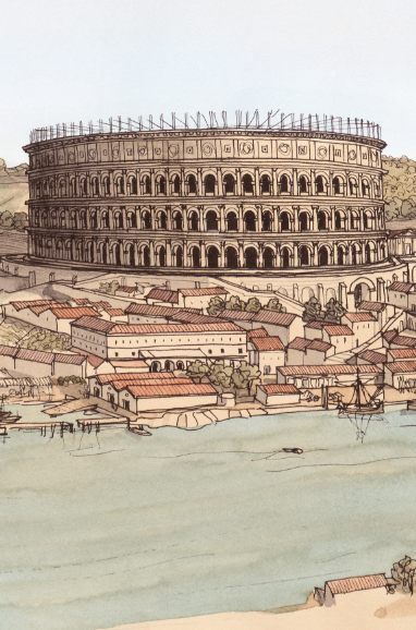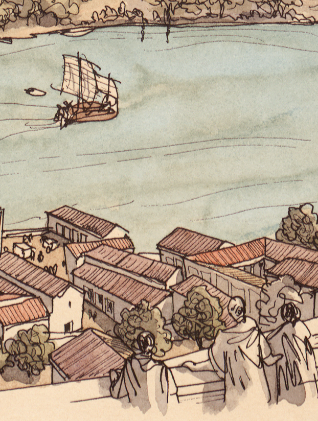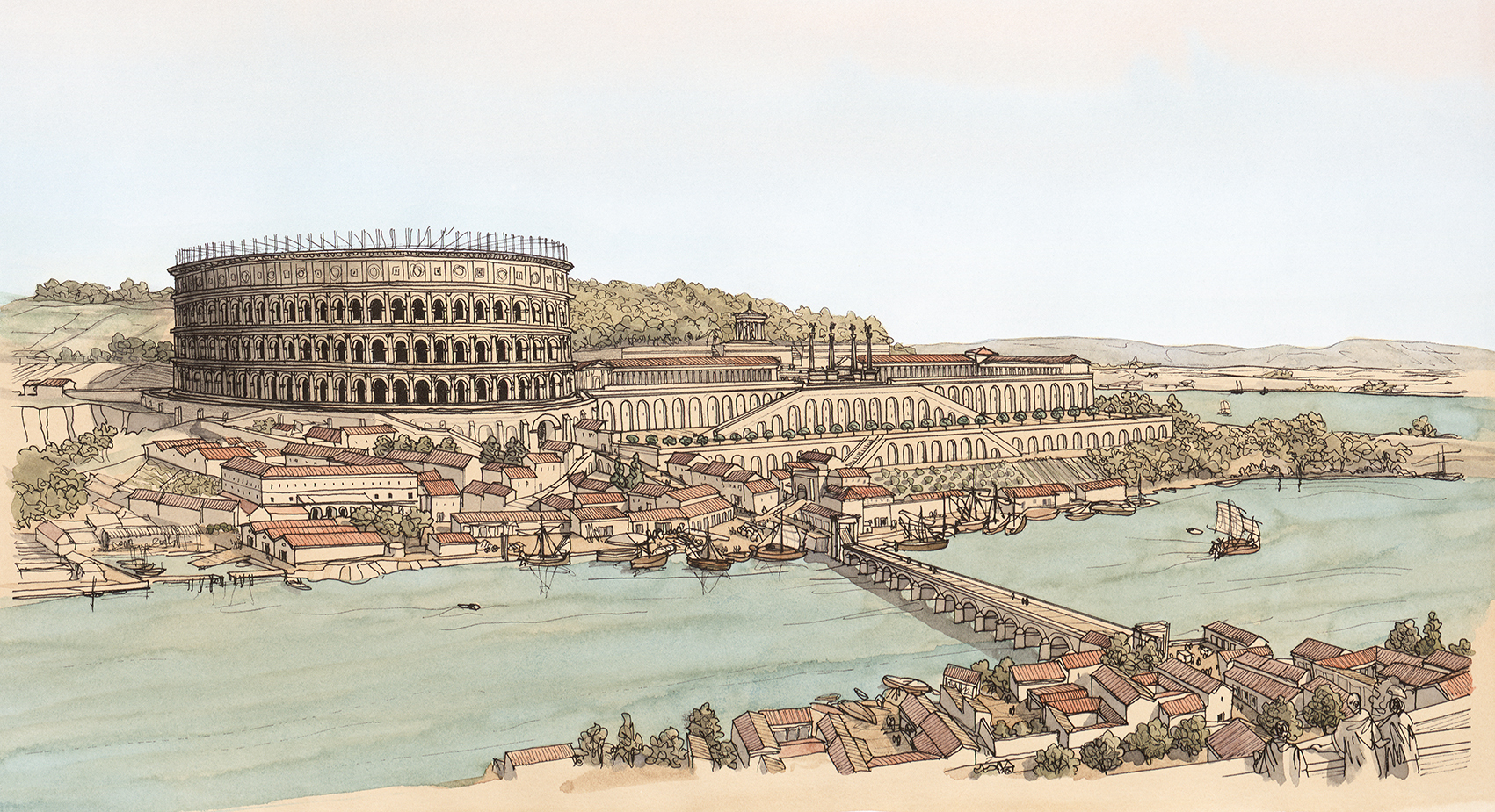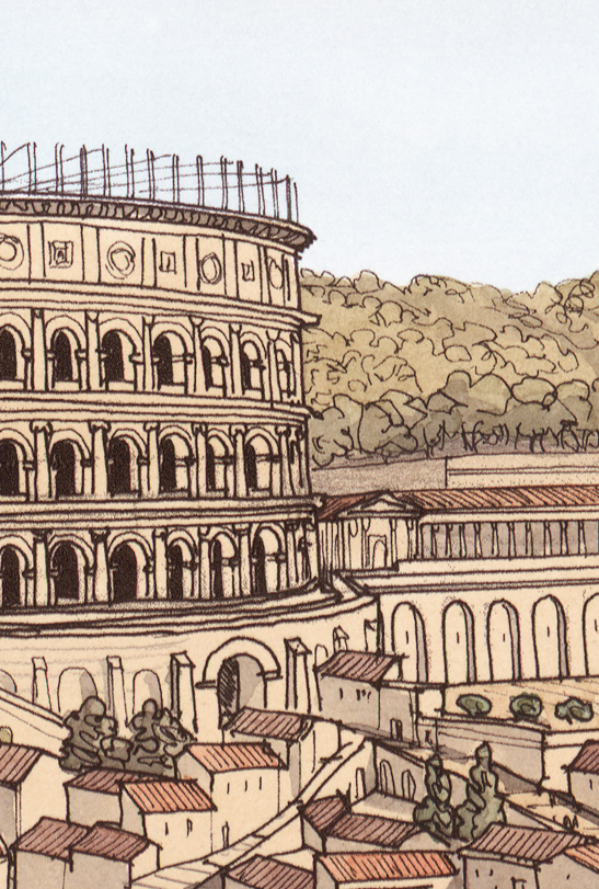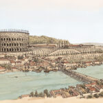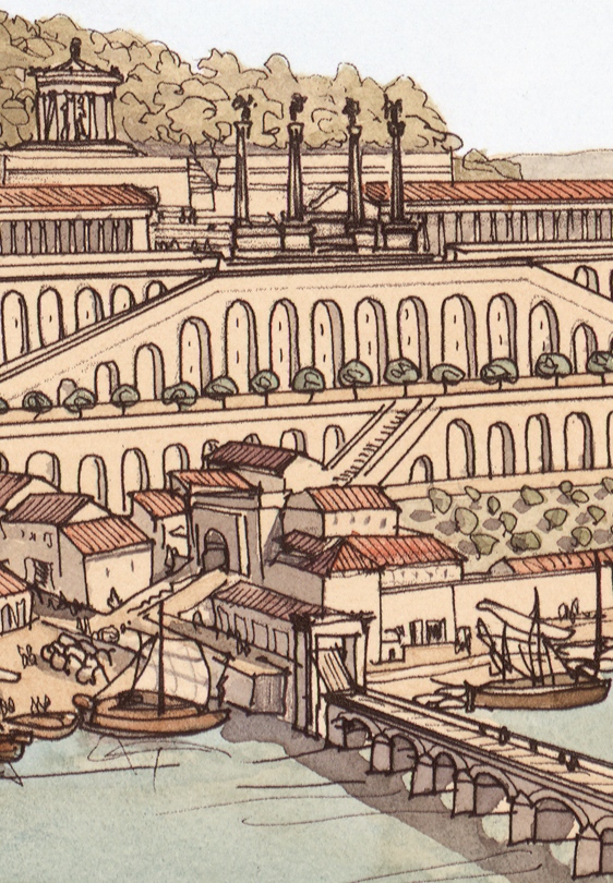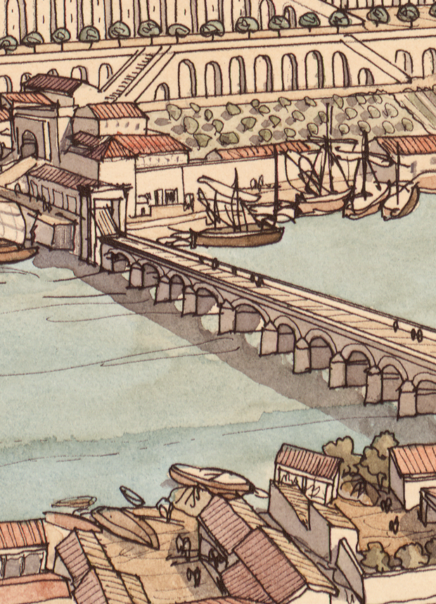 La boutique vous propose cette représentation de “Lugdunum (Lyon), le quartier de Condate (la Croix-Rousse), vu depuis le palais du Gouverneur” par Jean-Claude Golvin.