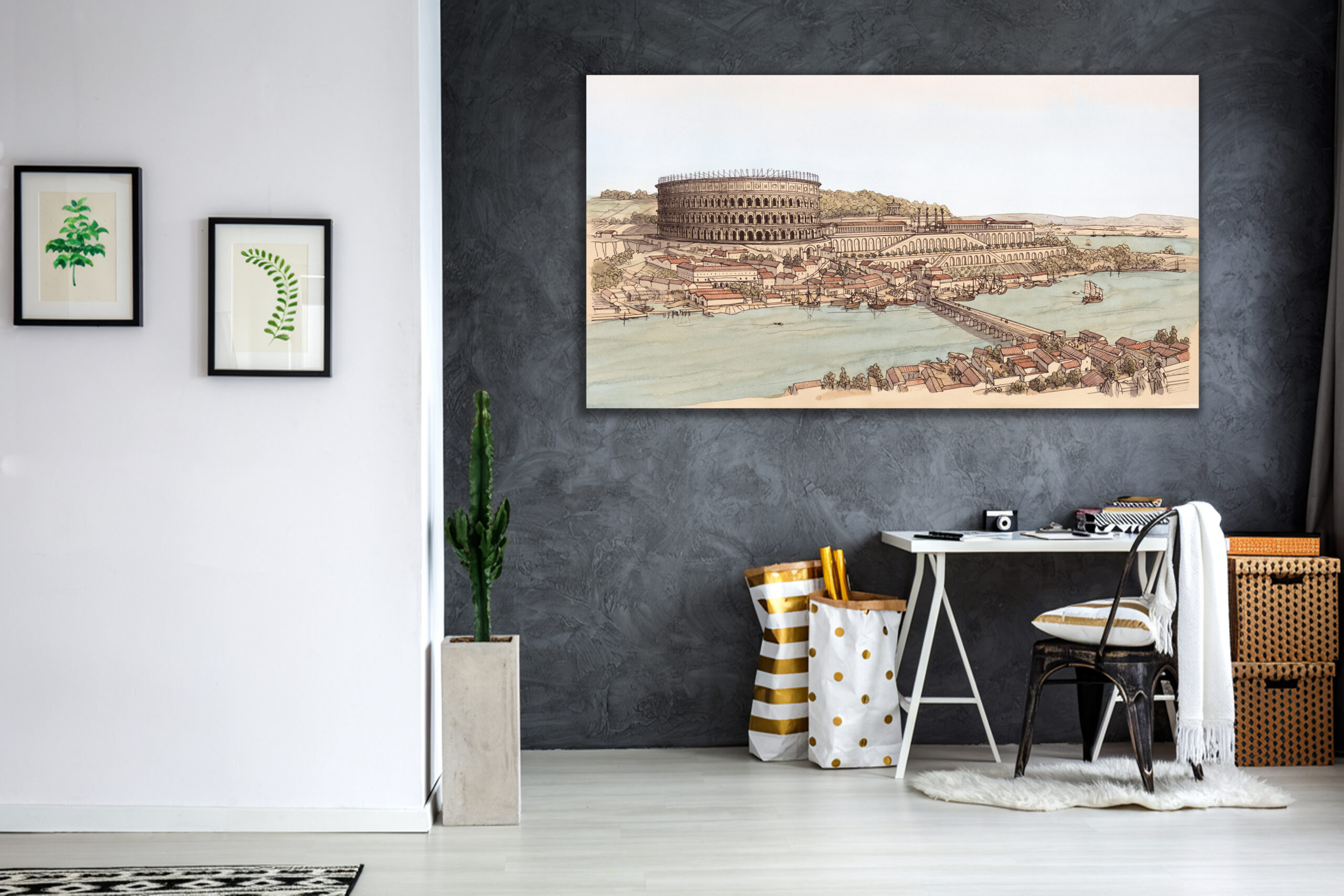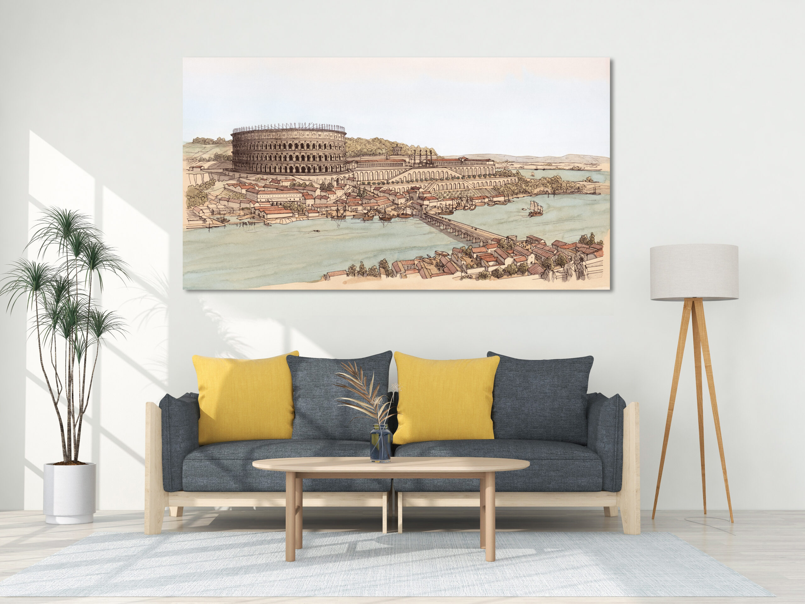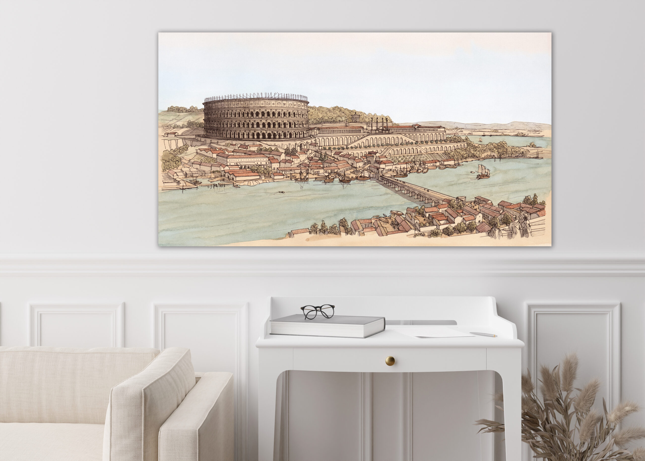 La boutique vous propose cette représentation de “Lugdunum (Lyon), le quartier de Condate (la Croix-Rousse), vu depuis le palais du Gouverneur” par Jean-Claude Golvin.