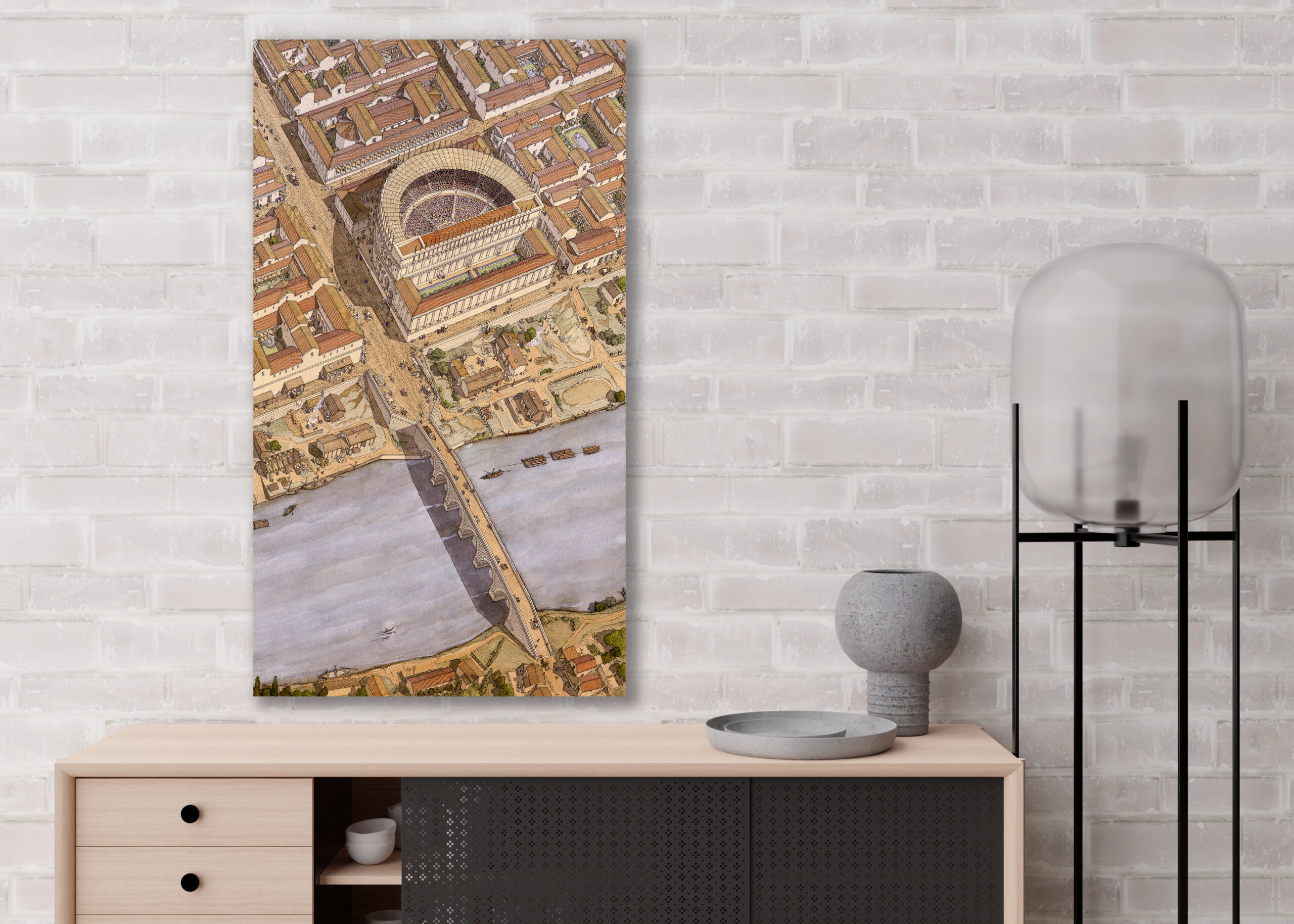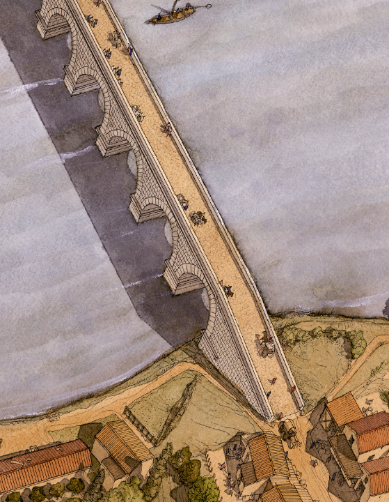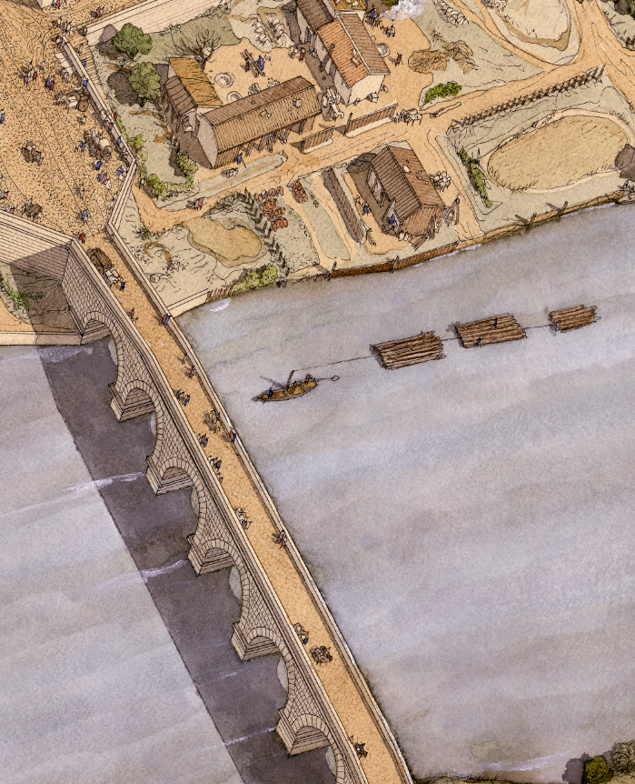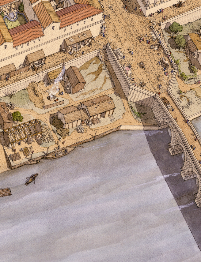 La boutique vous propose cette représentation en grand format de “Augustoritum Lemovicum (Limoges), le port et le théâtre” par Jean-Claude Golvin.