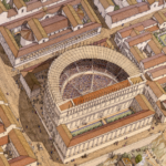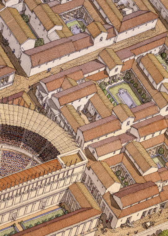 C’est une vue aérienne du port et du théâtre d’Augustoritum Lemovicum (Limoges).