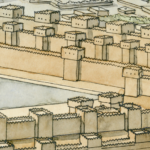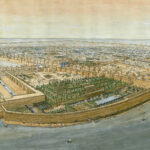 La ville et ses habitations se développent à l’arrière.